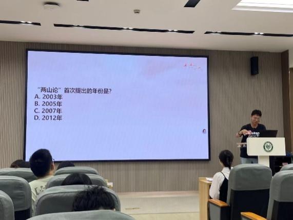 为深入学习贯彻习近平生态文明思想,切实增强党员生态文明意识,践行“绿水青山就是金山银山”理念,2025年10月16日,私密直播 环境学硕士第三研究生党支部在资环楼148室开展“弘扬‘两山’理论,赋能绿色发展”专题组织生活。通过理论研习、案例研讨、知识竞赛三个环节,生动诠释习近平生态文明思想的实践伟力,引导党员同志深刻把握“两山”理论的科学内涵与实践成果。