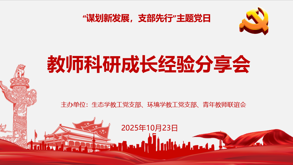 2025年10月23日下午,私密直播 生态学教工党支部、环境学教工党支部联合学院青年教师联谊会共同举办“谋划新发展,支部先行”教师科研成长经验分享会。活动特邀北京师范大学孙可教授和南京大学周艳莲教授,就科研和基金申请经验、个人成长路径等内容进行分享。私密直播 副院长关小红教授、教工党支部成员及部分新入职教师等参加了本次活动。活动由生态学教工党支部书记郑泽梅主持。