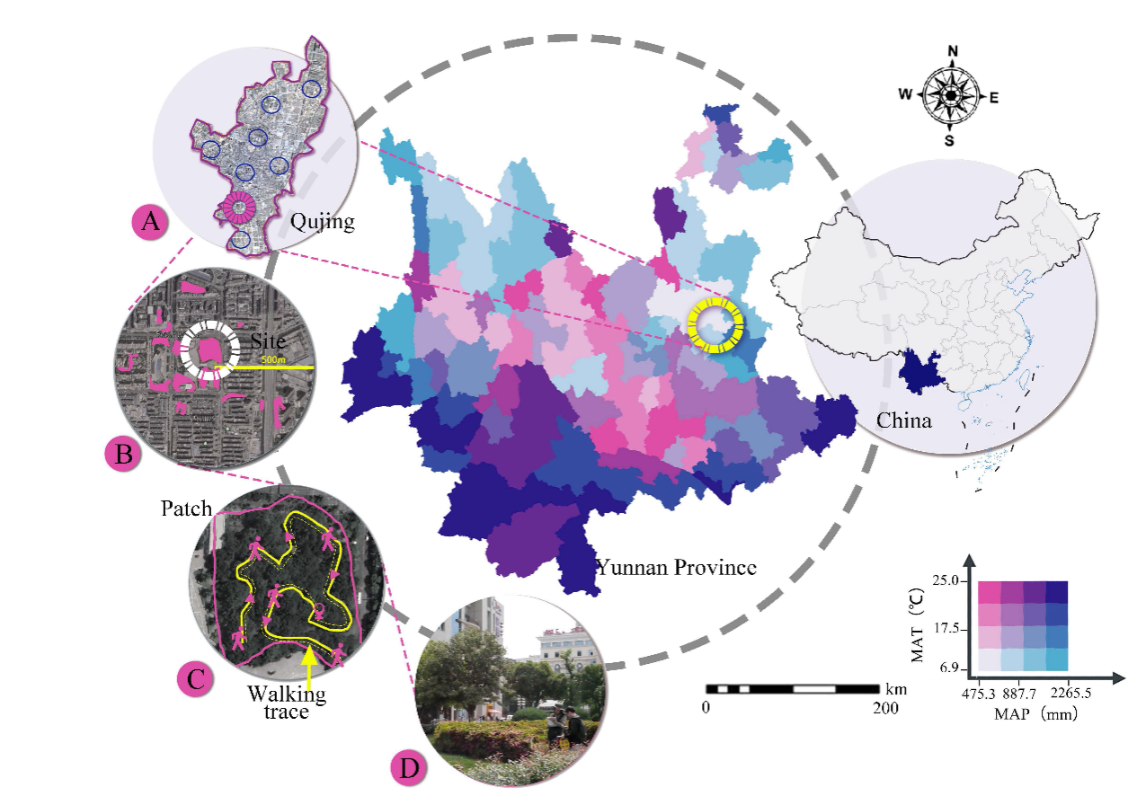 扩散在物种形成以及群落构建和维持等过程中扮演重要作用,是影响物种分布关键因子之一。城市是一个高度复杂的生态系统,影响物种在城市中扩散的环境因子(外因)也错综复杂。物种能否成功扩散到一个新的生境中,除受到环境因子影响外,还受自身扩散能力(内因)的影响。自生植物作为城市生物多样性的重要组成部分,是城市化的指示种组,,但不同种子传播方式的自生植物丰富度在城市环境梯度上的分异格局及其成因依旧缺乏全面的认知。据此,本研究以云南省16个地级市为对象,调查了城市绿地斑块中的自生维管束植物,分析了不同种子传播方式的自生植物物种丰富度的影响因素及其敏感性差异。