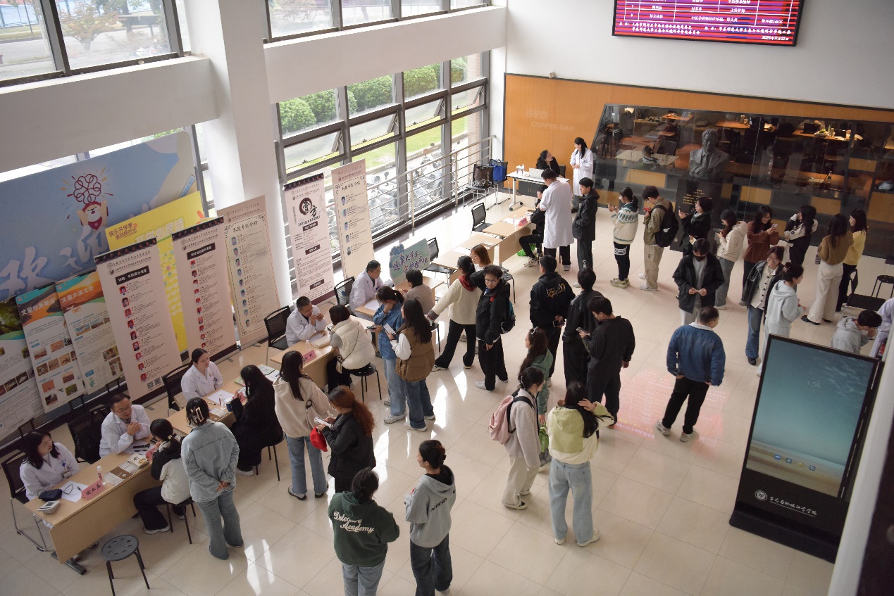 科普讲座结束后,闵行区中西医结合医院的涉及近10个科室的专家团队在资环楼大厅开展便民义诊服务。中医问诊、健康咨询、中医非药物治疗体验等多项服务同步上线,吸引了大批师生踊跃参与。不用跑医院,在校园里就能享受到优质、便捷的中医药健康关怀,这样的活动让师生直呼“贴心又实用”,收获了满满的好评。