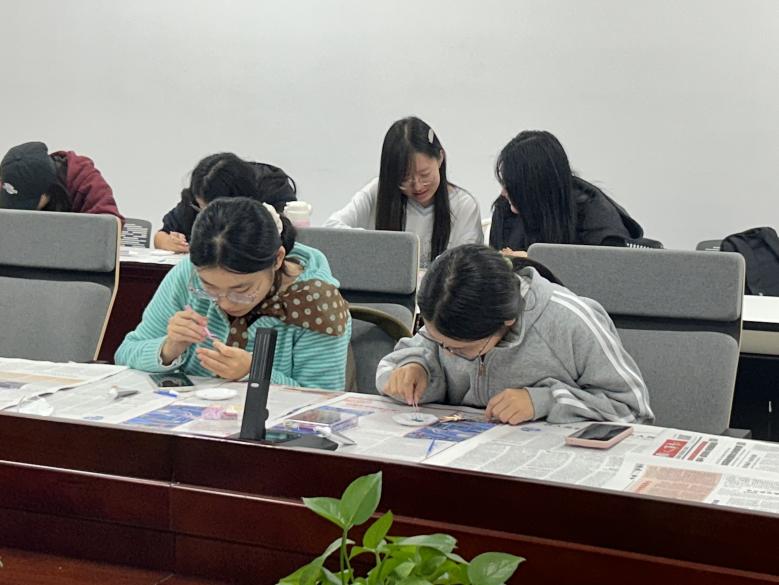 为了丰富同学们的课余生活,近距离体验中国传统手工艺的独特魅力,11月7日下午,“指尖拾贝,镶嵌流光”非遗螺钿DIY创意体验活动在资环楼269室开展。三十余名同学齐聚一堂,在螺钿镶嵌的指尖艺术中,共度一段与非遗对话的静谧时光。