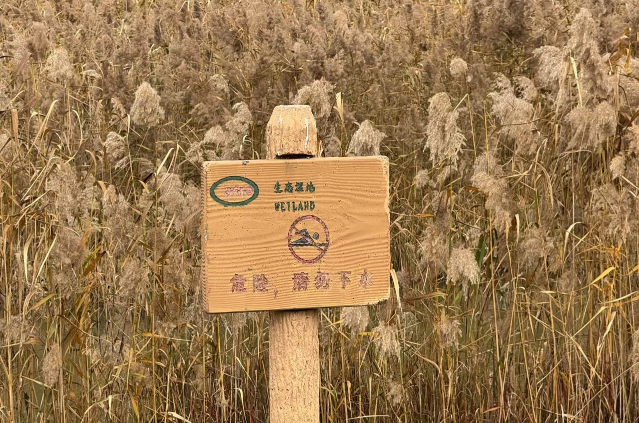上午,同学们从学校西门出发,在乘坐了45分钟的车后,顺利抵达上海化学工业区。随后在上海化工区物业公司工作人员引领下,进入园区参观。上海化工区湿地建成于2008年,是我国首次利用生态湿地进行化工污水处理探索尝试的化工园区,同时也是一个集水质净化、生物多样性、科普教育、美观、智慧监测于一体的展示平台。