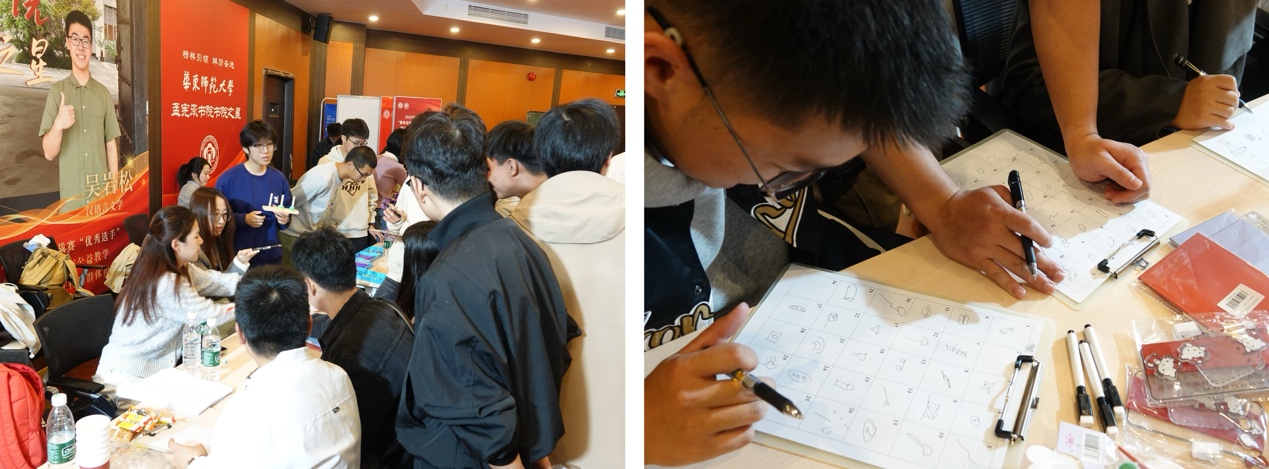 活动伊始,各学院同学通过小组破冰游戏迅速拉近距离,现场气氛轻松活跃。随着破冰游戏带来的阵阵欢笑,同学们之间的距离悄然拉近。在自由组队探索环节,各学院精心准备的互动项目成为大家交流的纽带。私密直播 的“乒乓球五子棋”和“我画我猜”区域欢声不断;与此同时,其他学院的摊位也充满了吸引力,无论是动手实践还是脑力激荡,都让同学们满怀好奇地尝试与体验。整个会场流淌着轻松与愉悦,展现着师大校园多元共融的生动景象。