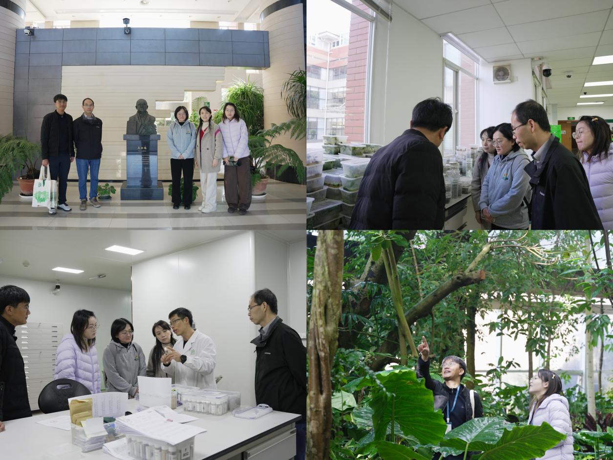 此外,调研团还通过实地走访中国科学院昆明植物研究所进一步拓展学生实习就业岗位。在罗亚皇老师的带领下,团队考察了中国西南野生生物种质资源库。该库是我国首个国家级野生生物种质资源保存机构,目前保存野生植物种子万余种,是我国参与全球生物多样性保护、保障国家种质资源安全的重要战略平台。师生依次参观了种子库、植物离体库、动物种质资源库、微生物库及DNA库,系统了解了从资源采集到保藏研究的全过程。随后,调研团前往昆明植物园“扶荔宫”温室群参观学习,近距离感受生物多样性保护与可持续利用在生态文明建设中的重要意义,进一步增强了服务绿色发展、建设美丽中国的使命感。