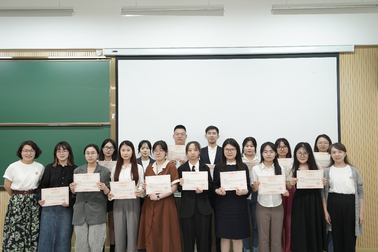 最后,路葵、吴丹两位老师为过去一年研究生会工作中表现突出的同学颁发“研究生会优秀干事”荣誉证书,并一起合影留念。
