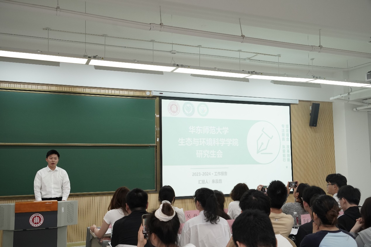 随后,院第十届主席团成员朱泓恺做工作汇报,报告从研会组成、学术实践、文体建设、服务创新等方面回顾了过去一年研究生会举办的各项活动和成就,也对未来工作进一步展望,希望新一届研究生会各个部门明确职能,继续加强团结合作,更好地服务同学,服务学院。