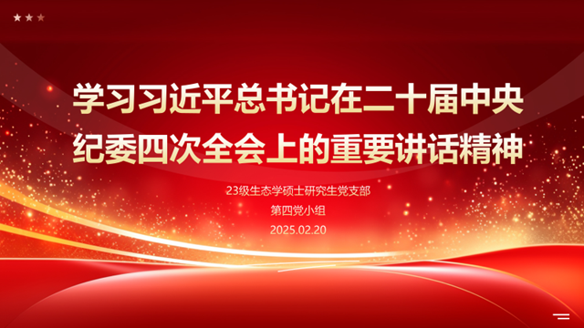 为深刻理解新时代反腐败斗争取得的历史性成就,清醒认识当前反腐败斗争形势的严峻复杂性,私密直播 2023级生态学硕士研究生党支部于2025年2月20日下午15:00在资环楼354举行了以“学习习近平总书记在二十届中央纪委四次全会上的重要讲话精神”为主题的组织生活。活动由支部书记张恂主持,支部全体党员参加。