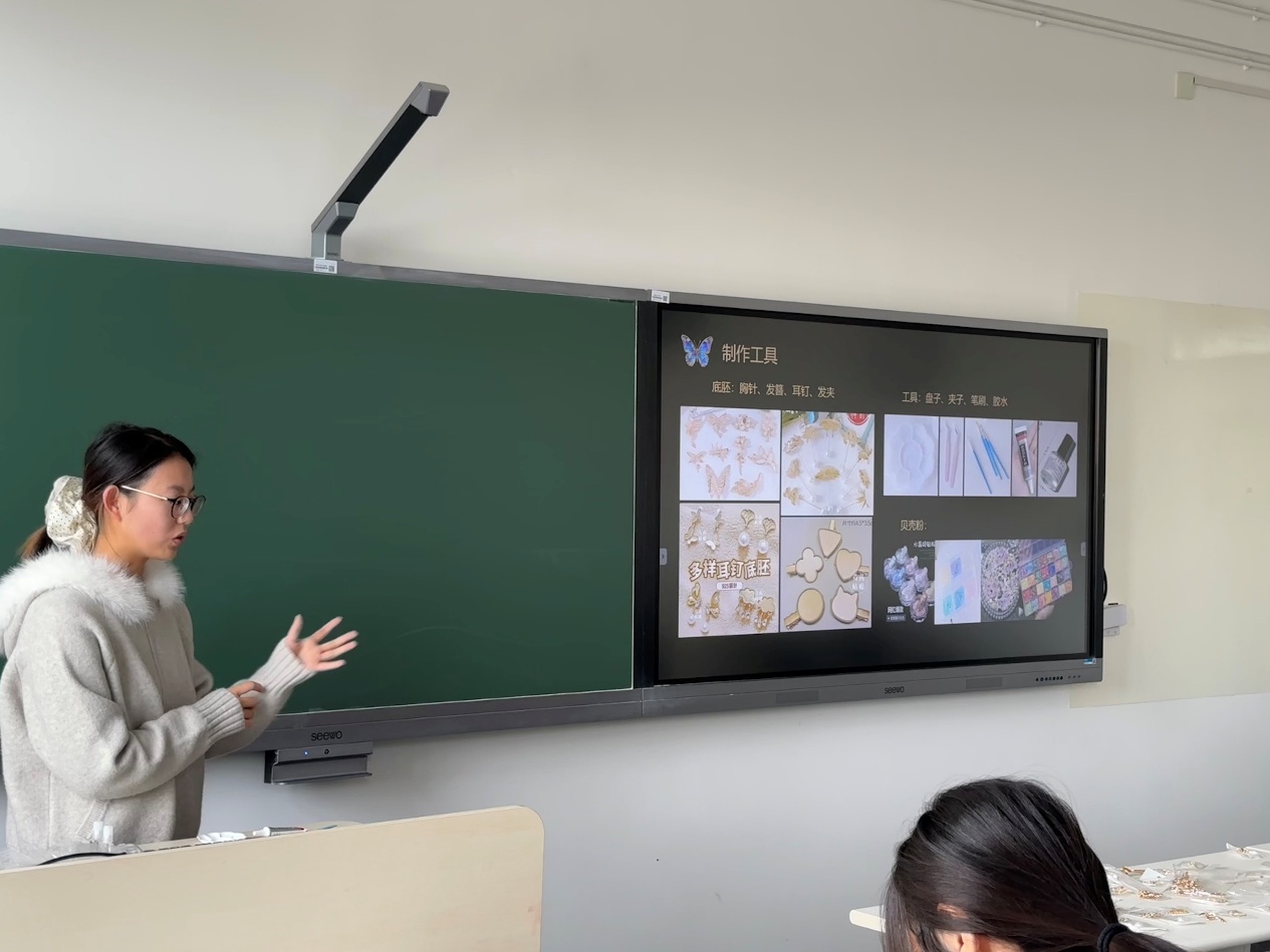 经过近两小时的精心制作,原本零散的材料在同学们手中化身为一件件独具匠心、光 泽温润的螺钿胸针或饰品。看着自己亲手完成的艺术品,参与者们纷纷展示作品,脸上洋 溢着成就与喜悦。