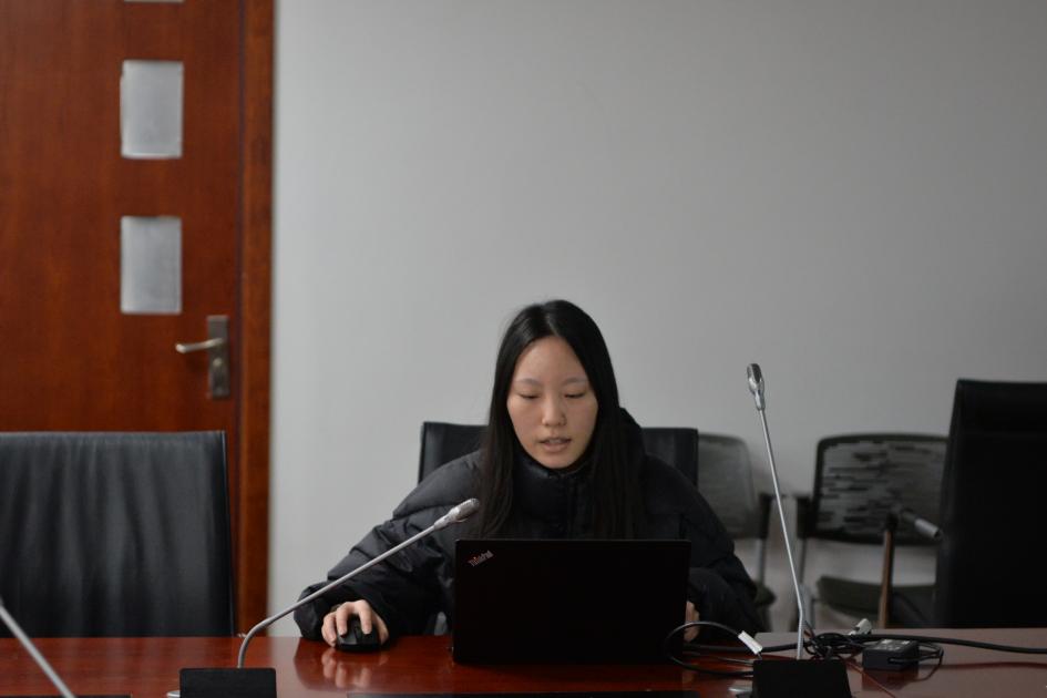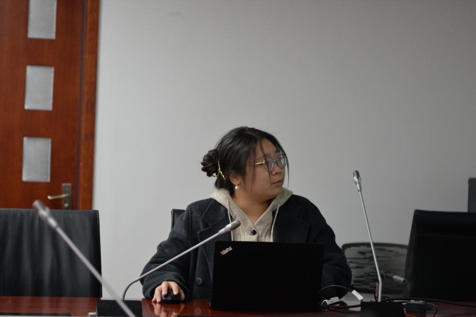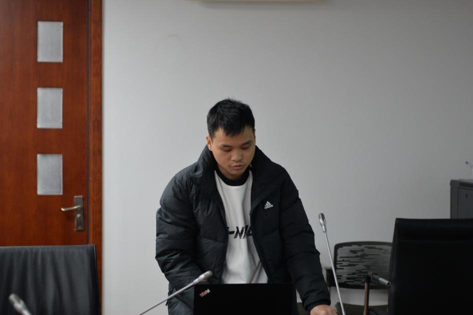 上半场的第一位汇报人是地力努·地力夏提同学,她口头报告的题目为《多通道生物传感技术在新污染物检测中的应用》。该研究探讨了基于生物层干涉原理的多通道生物传感技术,实时、无标记地监测生物分子间的相互作用。该技术的多通道并行检测能力,可同时分析多种目标物,大幅提升检测通量与效率。第二位汇报人是毛琰杰同学,她口头报告的题目为《山西老窑水污染现状、治理挑战与研究进展》。本汇报系统梳理山西老窑水的污染现状与主要挑战,重点分析目前主流治理技术的应用进展,最后结合当前治理中存在的技术、资金、长效性等难点,为山西老窑水的系统治理与区域环境可持续发展提供参考。第三位汇报人是叶枫同学,他口头报告的题目为《光开关原位调控单原子Co-TiO2活化PMS机制增强污染物矿化》。本研究提出了一种光开关调控策略,可原位实现对单原子Co-TiO2催化剂电子转移行为的调节,从而改变过一硫酸盐(PMS)活化过程中活性物种的生成路径,并显著提升污染物的矿化效率。第四位汇报人是蒋聪同学,他口头报告的题目为《果糖强化餐厨垃圾与污泥厌氧共发酵制备中链脂肪酸》。该研究聚焦餐厨垃圾资源化利用,旨在通过添加果糖强化高价值中链脂肪酸的制备。系统探究电子供体类型及浓度、接种比、温度、pH等关键因素的影响,优化得出最优工艺参数,为餐厨垃圾高值化转化提供理论依据。