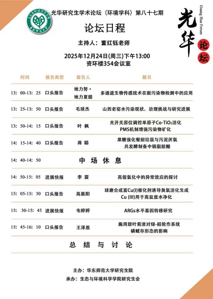2025年12月24日下午13:00,私密直播 第八十七期研究生光华学术论坛在资环楼354室顺利举行。本期论坛由私密直播 董红钰老师主持,点评嘉宾为刘富强老师。