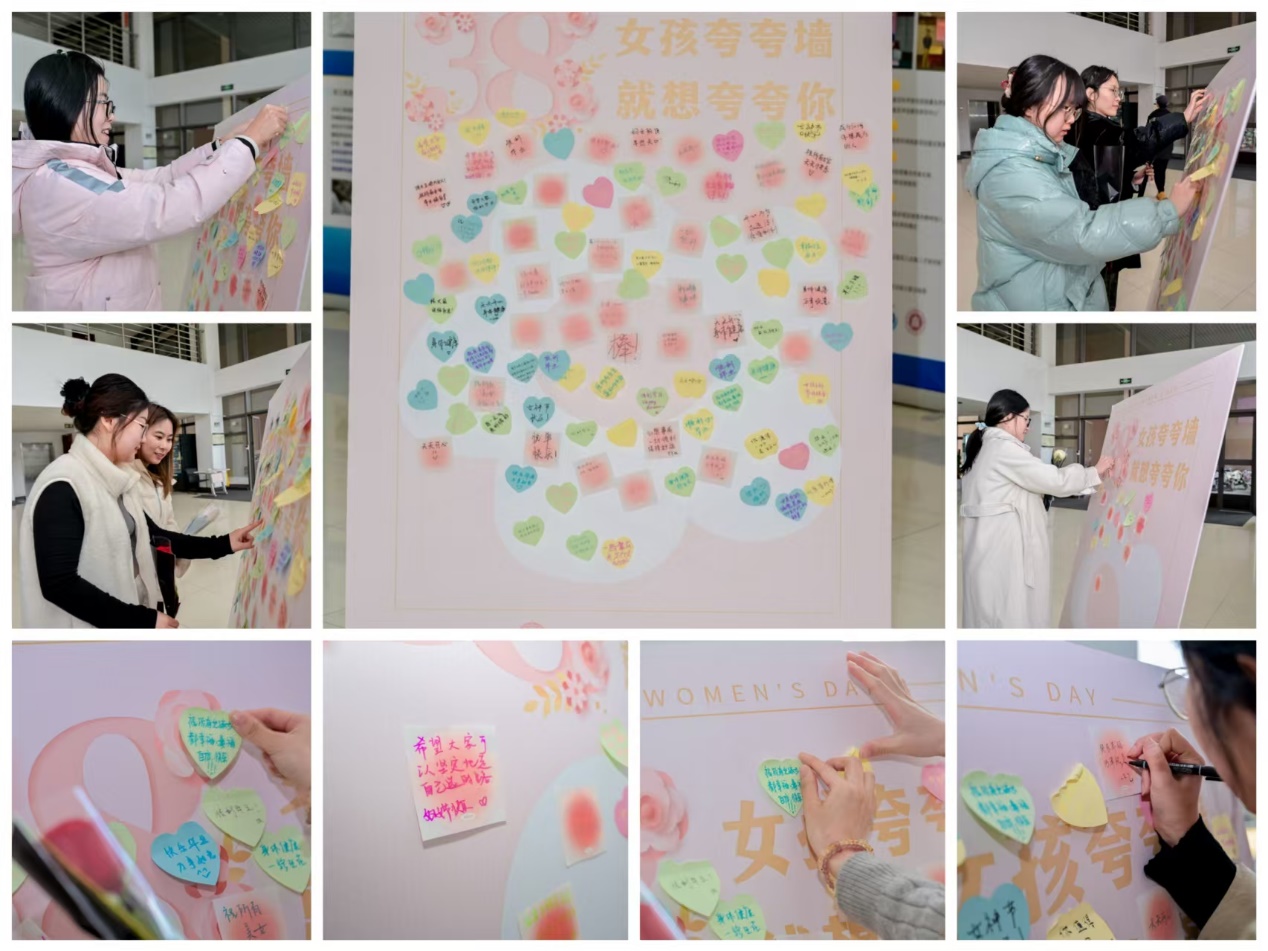 随着本次活动的圆满落幕,节日的祝福已悄然转化为一系列贴心而温暖的行动,不仅生动展现了学院对女性师生深切的人文关怀与崇高的敬意,还巧妙利用了夸夸墙这一别出心裁的交流平台,让赞美之词与尊重之声在校园内回响。在此,向全体女性师生、校友致以最真挚、最热烈的节日祝福,愿你们的生活如花儿般绚烂多彩,节日愉快,幸福绵长!