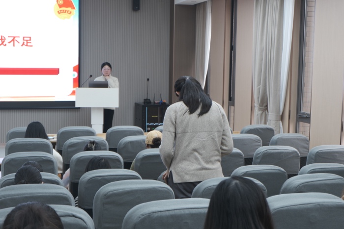 辅导员吴丹以“锚定铸魂育人,厚植时代担当”为主题召开班会,为同学们新学期的思想建设、科研学习、实践创新等方面提供指导。她向同学们推荐了学习资料、分享了优秀榜样事迹,并着重介绍了双创比赛的重要性,激发了同学们参与创新实践的积极性。此外,吴丹老师还针对校园网络使用、AI模型应用及心理问题应对等方面,为同学们提供了实用建议,助力同学们的科研生活。