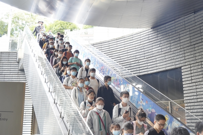 上午9点,到达上海中心大厦,同学们首先在票务中心门前集合,张勇老师向同学们简要介绍了上午的行程安排,并分享了关于上海中心的参观建议。