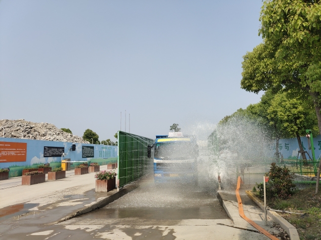 在建筑垃圾区域同学们看到了作业中的洒水车,毛经理对厂区内洒水控制粉尘、来往车辆清洁及循环用水等进行了讲解。毛经理也表示,上海垃圾分类后两网融合站点垃圾减量化有很大改善,各类物品的纯净度也大大提高。