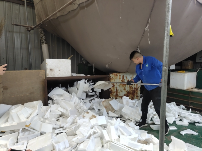 结束可回收物压缩区参观后,毛经理带大家来到了建筑垃圾回收区。首先毛经理为大家解释了建筑垃圾的范围,并针对建筑垃圾不同类别的存放区域、处理去向为大家进行讲解。在这里大家看到了席梦思床垫、旧家具、装修材料是如何经过分拣、破碎后被资源化利用的。