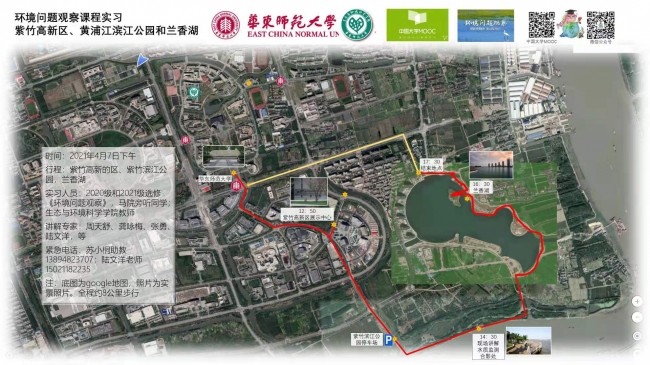 2021年4月7日,私密直播 2019级、2020级共50余名本科生,由私密直播 张勇老师、周天舒老师、陆文洋老师及5名助教带队,参加了“紫竹高科技园区、紫竹滨江公园及兰香湖参观”《环境问题观察》校外实践活动,马克思主义学院龚咏梅副院长和10多名教育学部本科生、马克思主义学院研究生全程参加了这次实践实习。这次实践活动的主要内容是了解紫竹高科技园区情况,了解有关黄浦江和兰香湖的水文水资源和生态环境知识,课程结束后获得了同学们的一致好评。