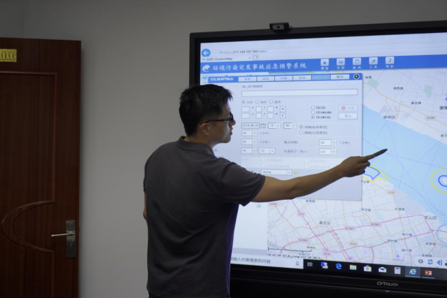 工作人员输入参数演示溢油情况下的预警系统
