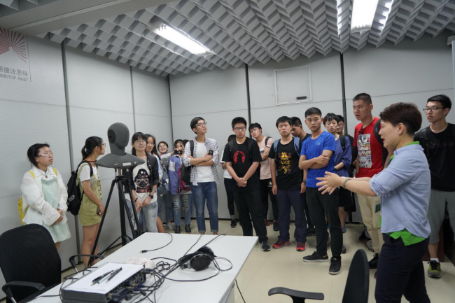 接着大家前往消声室中体验了什么是半消声室,工作人员也向同学们介绍了半消声室、消声室的日常工作是如何进行的。