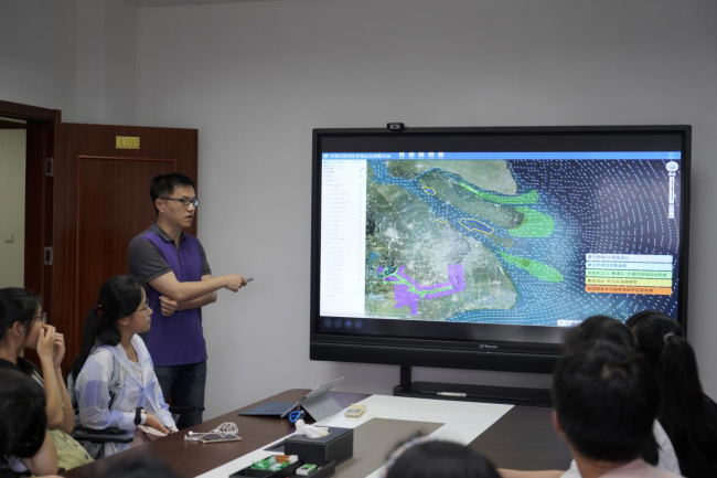 最后大家一同参观了水污染模拟工程技术中心,工作人员主要向同学们介绍了水环境模型研发的简要过程,并且向大家具体展示了假设溢油情况下,水污染模拟工程技术中心是如何通过突发事故预警模型来进行预测的。