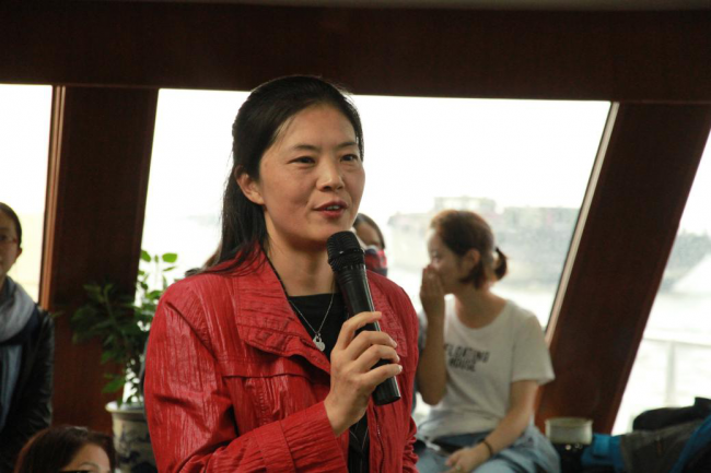 老师们在甲板上合影留念