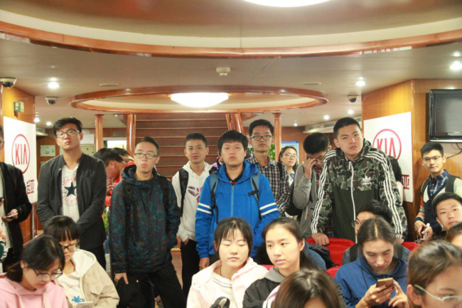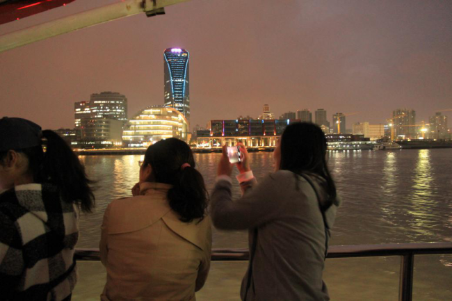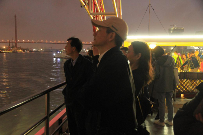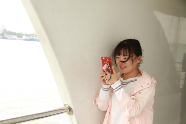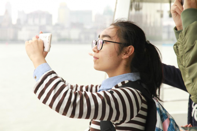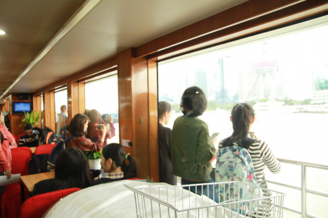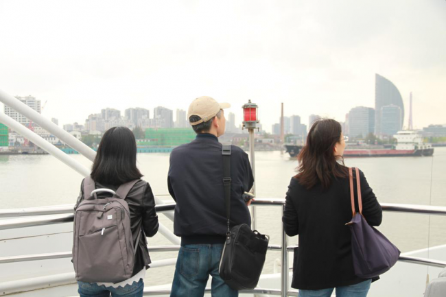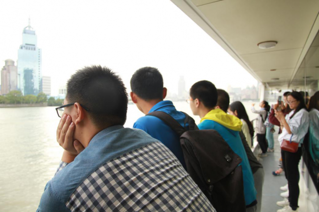 同学们在船舷上远眺陆家嘴