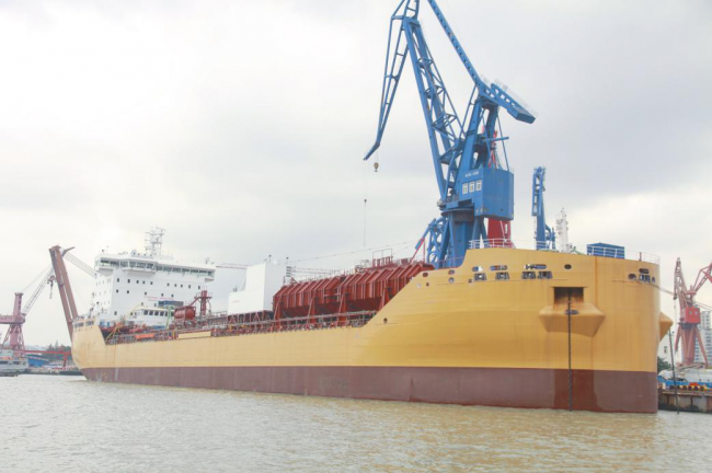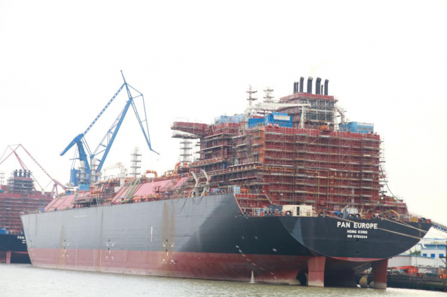 岸边正在建造的船舶