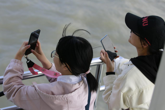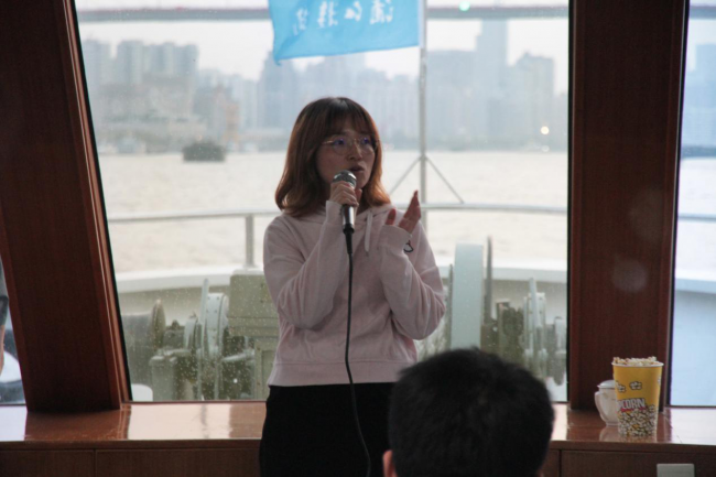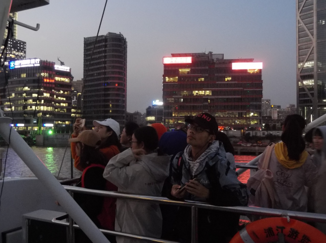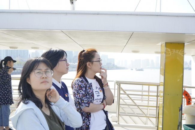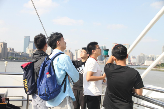 一上船同学们都被陆家嘴的高楼大厦所吸引,代表魔都的四座标志性建筑——东方明珠塔、金茂大厦、上海环球金融中心、上海中心,它们是中国改革开放的象征和上海现代化建设的缩影。