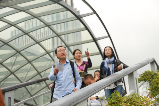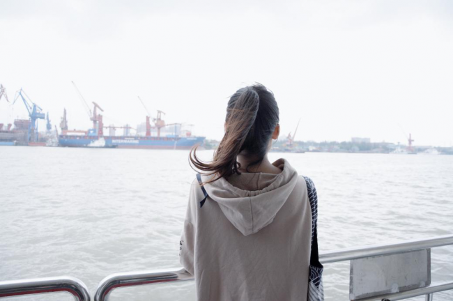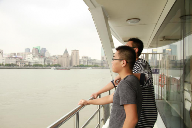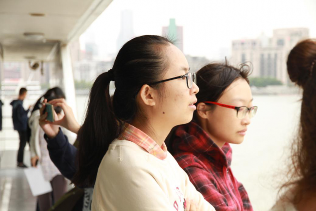 同学们在船舷上远眺陆家嘴