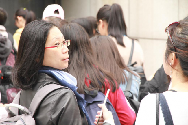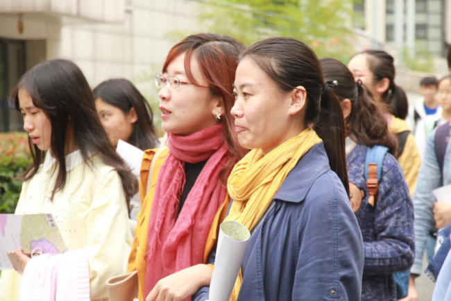 前往码头路上的老师、同学们