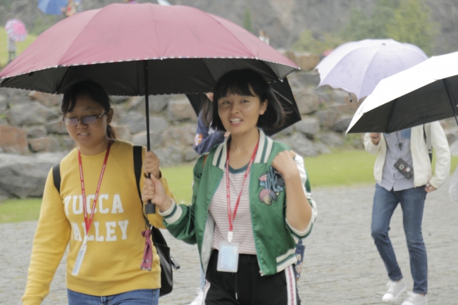 绵绵细雨,也淋不走大家的好心情,一把把小花伞凑在一起,成了辰山植物园一道美丽的风景