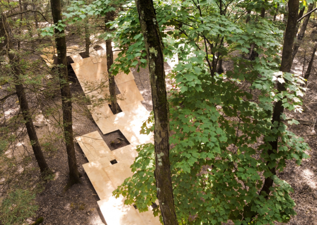 在自然场所中搭建不同高度的平台,并用坡道连接,人们可以根据所在的不同高度近距离接触植物的不同部分。根据季节变化也可以有不同的活动,从而收获不一样的体验。这有异于常见公园中人与自然有强烈割裂感的情况,人们参与到自然中,像自然中生长的每一个动物植物一样依赖自然。