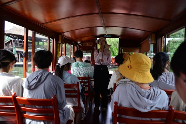 参观结束后,张巍老师给同学们介绍了西溪湿地的发展历史、综合保护工程以及生态环境监测和管理工作,张聪聪、方菁老师一同解答了同学们在景观规划、环境治理、原住民去向及智慧化管理等方面的问题,对西溪湿地的功能和可持续发展路径有了更加深入的了解。
