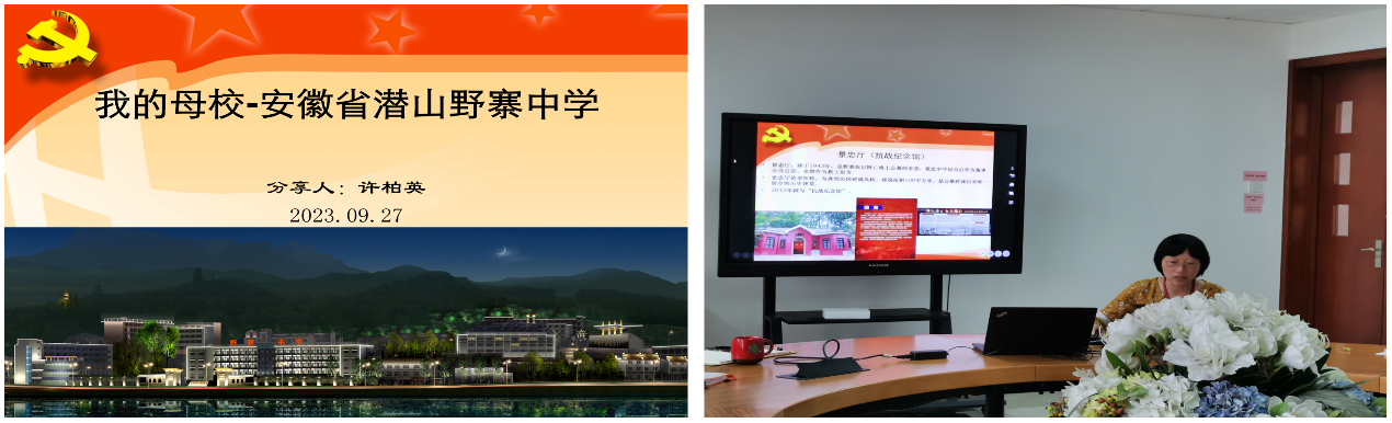 许柏英以“我的高中母校-安徽省潜山野寨中学”为题进行了分享。潜山野寨中学不仅是教学质量优异的省级示范高中,同时也是安徽省安庆市爱国主义教育示范基地。它始建于1943年,是全国唯一为守陵而建的中学,国民革命军48军176师的985位抗日阵亡将士长眠于校园内的将士墓,学校也因此形成了依陵建校,以校护陵的独特格局。近年来,学校越来越多的优秀毕业生选择报考军校,从军报国。中共中央总书记、国家主席、中央军委主席习近平在今年秋季学期开学之际给该校新考取军校的20名同学回信,勉励他们铸牢忠诚品格,刻苦学习训练,锤炼过硬作风,努力成长为高素质专业化新型军事人才,为国家和军队贡献力量。春去秋来八十载,教育的光明火种与守陵的光荣使命一样,从未熄灭,从未忘却。