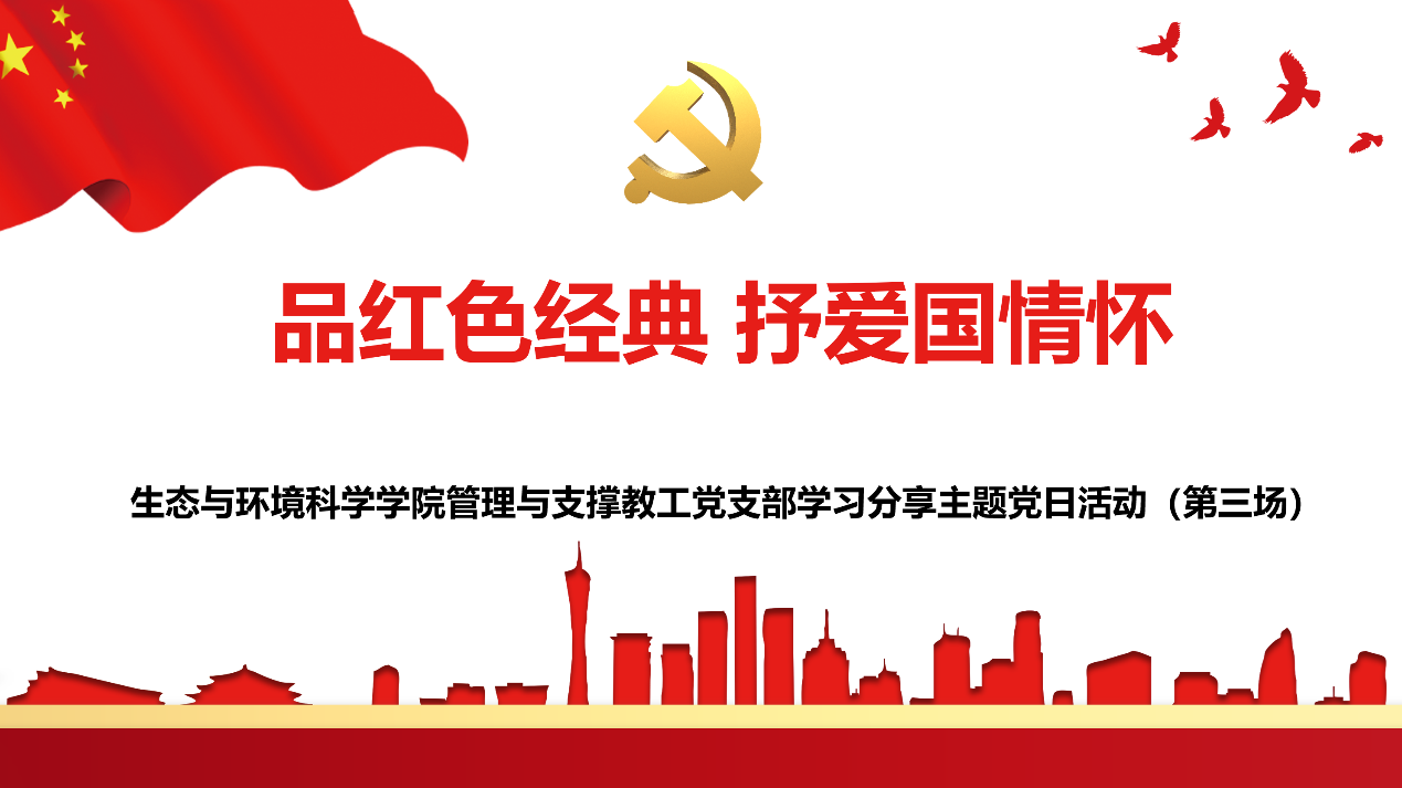 2023年9月27日下午,私密直播 管理与支撑教工党支部在273会议室开展了“品红色经典 抒爱国情怀”第三场学习分享主题党日活动,本次活动由支部书记谭珊珊主持,欧阳澳、董舒、丁媛媛和许柏英四位老师做学习分享。