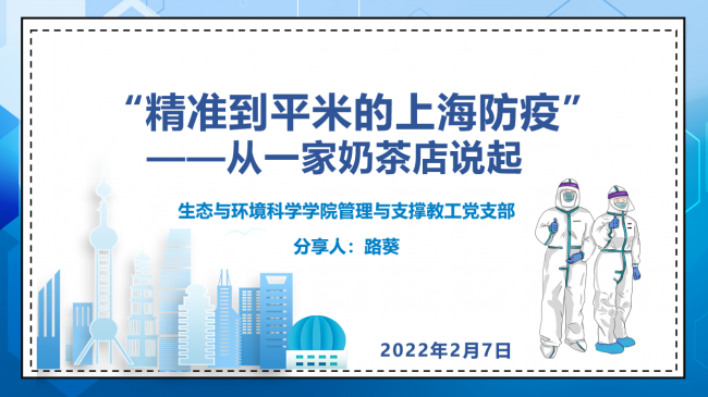 2022年2月7日下午,支部举办第一场寒假学习分享主题活动,分享人是路葵和施卉晰老师。路葵老师分享了两个主题,分别是《精准到平米的上海防疫——从一家奶茶店说起》、《你与恶的距离有多远——由热播剧<开端>谈网络暴力乱象》;施卉晰老师分享的主题是《情与桥——观<长津湖水门桥>有感》。