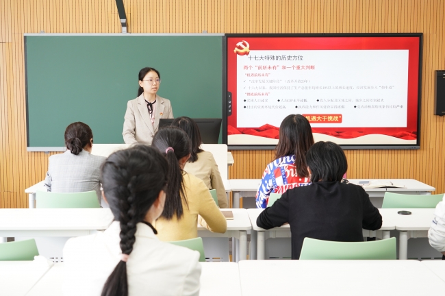 第十四讲“奋斗百年路,启航新征程——中共十六大历史回顾”由管理与支撑教工党支部党员崔玉雪讲读。崔玉雪老师为大家详细介绍了中共十六大的召开背景、召开情况、会议内容及其重要意义。十六大是我们党在新世纪召开的第一次代表大会,也是党在开始实施社会主义现代化建设第三步部署的新形势下召开的一次十分重要的代表大会。大会全面回顾了党的十五大以来5年的工作,系统总结了党的十三届四中全会以来13年奋斗历程和基本经验;把“三个代表”的重要思想确立为党的指导思想;提出全面建设小康社会的新目标。同时大会着眼于党的兴旺发达和国家长治久安,顺利实现了中央领导集体的新老交替。十六大极大地统一了全党的思想,振奋了全国人民的精神,对于确保我们胜利实现社会主义现代化的目标和中华民族的伟大复兴,具有重要的现实意义和深远的历史意义。