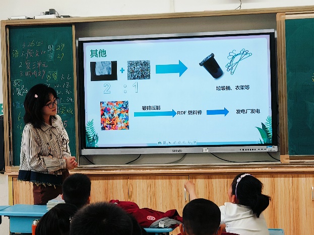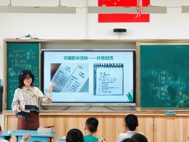 课程接近尾声时,讲师们带领同学齐声朗读《环保倡议歌》:“小手巧整理,衣柜换新颜;旧衣别丢弃,回收献爱心……”清脆的童声回荡在教室里,仿佛播撒下一颗颗绿色的种子。