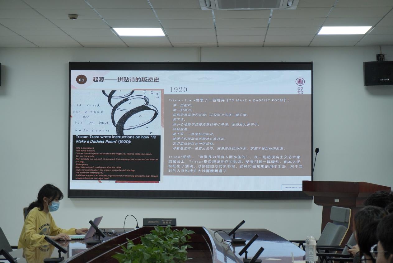 随后,活动进入了充满诗意与文化气息的环节——“世界读书日·海子诗歌分享会”。徐冰倩同学带领大家领略海子诗歌的独特魅力。海子的作品让党员们深刻感受到了他对人生的思考、对理想的追求以及对生死的超然态度。此外,活动还特别介绍了拼贴诗这一新兴艺术形式,从其起源、发展到影响,全方位展现了拼贴诗的创意与魅力,激发了党员们对诗歌创作的浓厚兴趣。