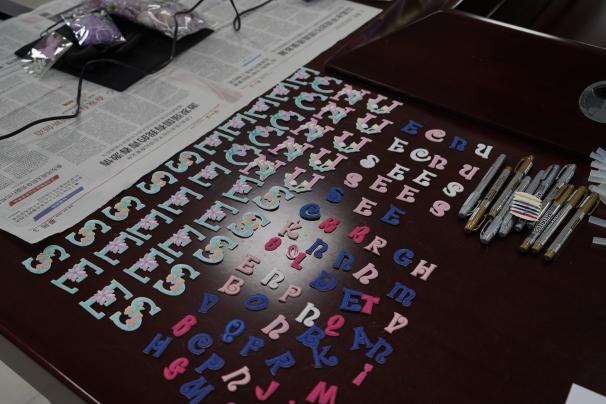 活动现场准备了丰富的花材和装饰材料,包括各色鲜花、绸带、珍珠、贴纸及热熔胶枪等工具。主持人陈粤琦详细讲解制作流程和安全事项后,同学们跃跃欲试,纷纷投入创作,从色彩选择、饰品修剪到定位粘贴,每顶学位帽都融入了独特的创意与情感。