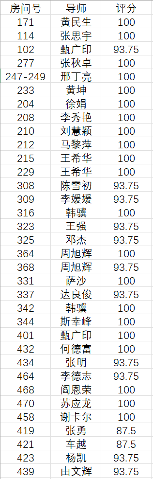 本次检查中,大多数学生办公室评分在90分以上,仅有2个办公室评分在90分以下,其中有21个办公室获得满分,整体情况较优秀,值得学习。但仍有一些学生办公室存在物品摆放杂乱、冰箱上堆放杂物、门口垃圾堆放未清理等问题,希望能够及时改正。