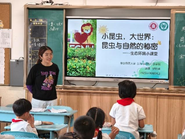 2025年6月3、4日下午,生态环境小课堂讲师团和研会秘书部成员前往私密直播 附属紫竹小学、永德学校开展环教课,本次环教课的主题为“小昆虫,大世界:昆虫与自然的奥秘”,担任本次课程的讲师为罗晓琳、朱圆圆和阮文亮同学。讲师们通过生动的案例和专业的讲解,带领小同学们深入了解昆虫的生物学特征、生态价值及演化历程,展现小昆虫在地球生态系统中的“大能量”。