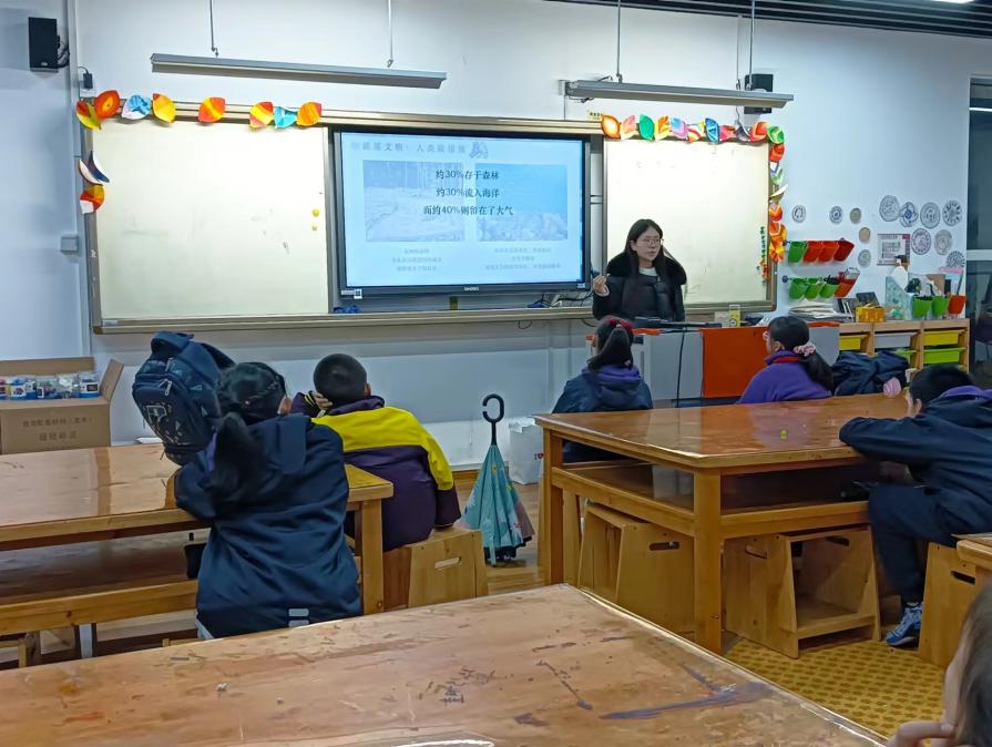 2023年3月5日和6日,正值学雷锋日,私密直播 的生态环境小课堂讲师团和团委学生会实践部成员前往私密直播 附属紫竹小学、永德实验小学开展生态环境教育课《碳如何玩转地球》,为孩子们科普“碳”的相关知识,提升他们的环保意识。担任本次课程的讲师是李凯茵和向昭宜同学。