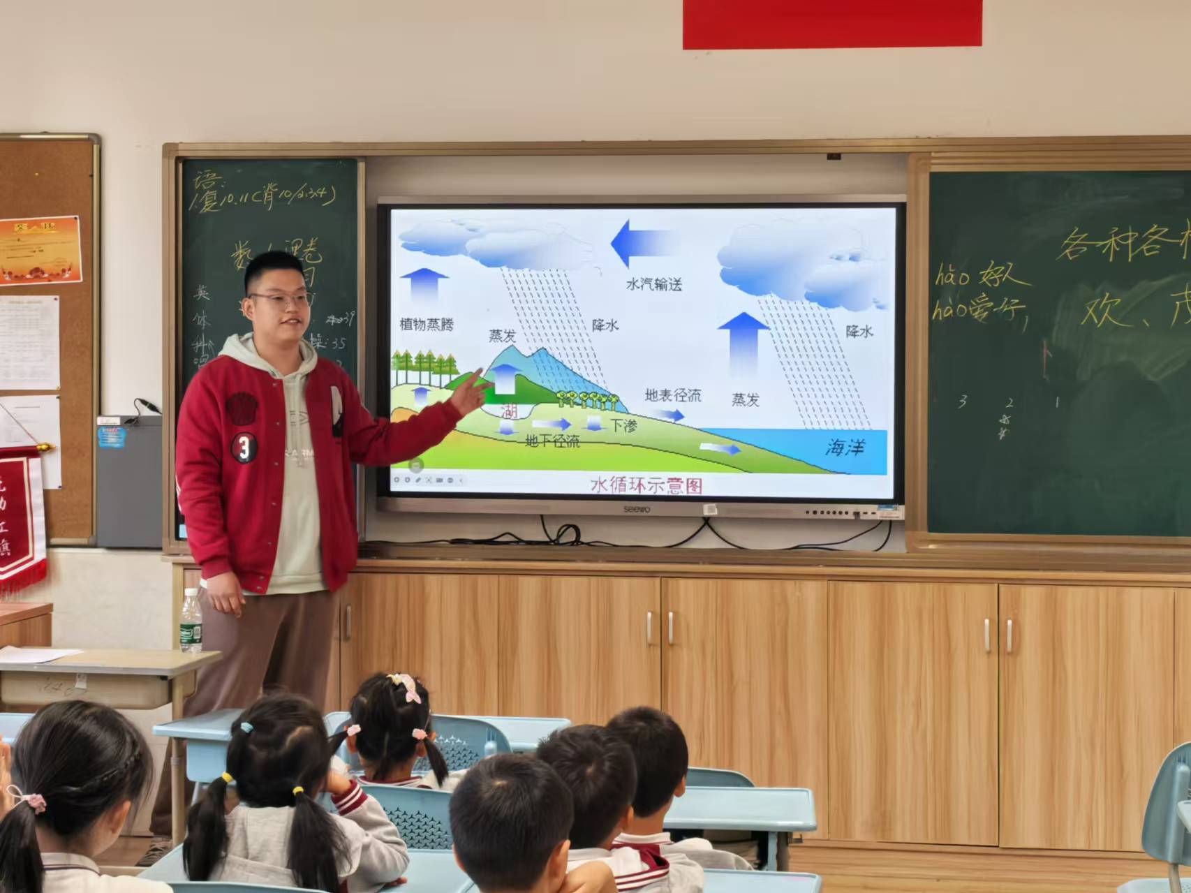 2024年10月22日-24日下午,私密直播 生态环境小课堂讲师团、研究生会秘书部的成员们分别前往私密直播 附属紫竹小学、闵行永德学校与马桥民办小学开展水循环与水资源保护环教课,王九洲和陈子萌担任本次课程的讲师。