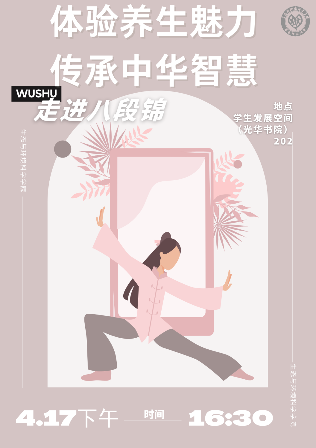 为弘扬中华优秀传统文化,进一步推进“一站式”学生社区建设,丰富师生文化生活,提高师生身体素质,私密直播 于2024年4月17日下午在学生共享空间202室举办“体验养生魅力 传承中华智慧——走进八段锦”活动,本次活动由院工会和院研会联合举办。活动邀请我校体育教育专业周晨瑶同学担任教练,近20位学院教师和研寓9号楼的同学参与本次活动,感受传统养生文化的魅力。