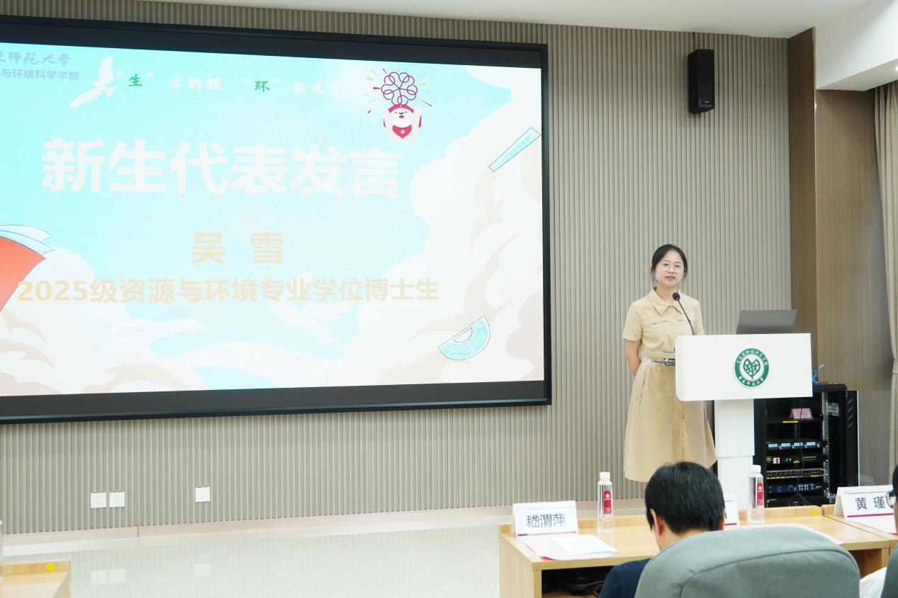 新生代表吴雪发言表示,作为跨越职场与校园的“双重身份者”,大家来自不同的省份,从事不同的领域,却因对资源与环境共同的热爱在此相聚。在职博士的征途注定充满挑战,愿同学们以山海的胸怀丈量学术的深度,以江河的韧劲突破研究的边界,共同书写资源与环境领域的新篇章。