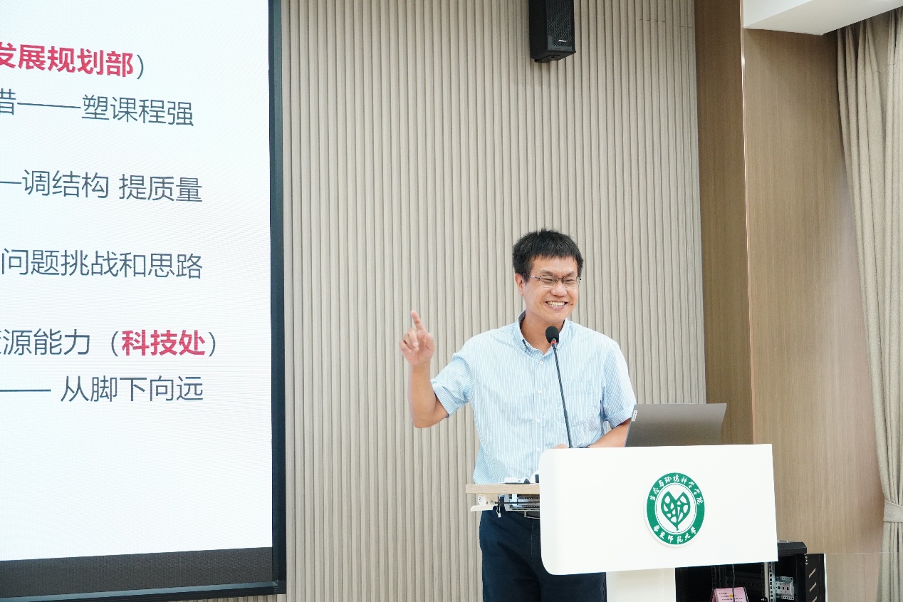 院长夏建阳传达了学校暑期党委全委扩大会精神及学院相关部署,重点解读了学校“十五五”规划的新方向,强调学院将围绕“创新学术建制”,推进“平台主建、学院主战”,促进学科交叉融合,整合校内外野外台站资源,积极建设国家级野外台站联盟。