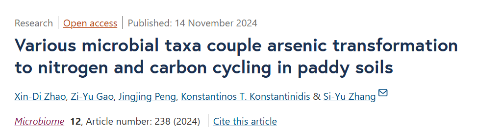 2024年11月14日,Microbiome期刊在线刊登了私密直播 私密直播 张思宇研究员团队的成果Various microbial taxa couple arsenic transformation to nitrogen and carbon cycling in paddy soils。